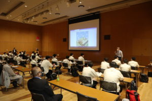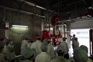 9月 白石工業高等学校現場見学会 令和4年9月5日(月) (一社)宮城県空調衛生工事業協会と協同で 宮城県白石工業高等学校(設備工業科1年生)の現場見学研修会を実施いたしました。 講義「建物ができるまで」 夢メッセみやぎエネルギー棟 消火ポンプの見学 見学会後日にいただいたアンケート結果はこちら。 ● 現場見学研修会2 アンケート結果